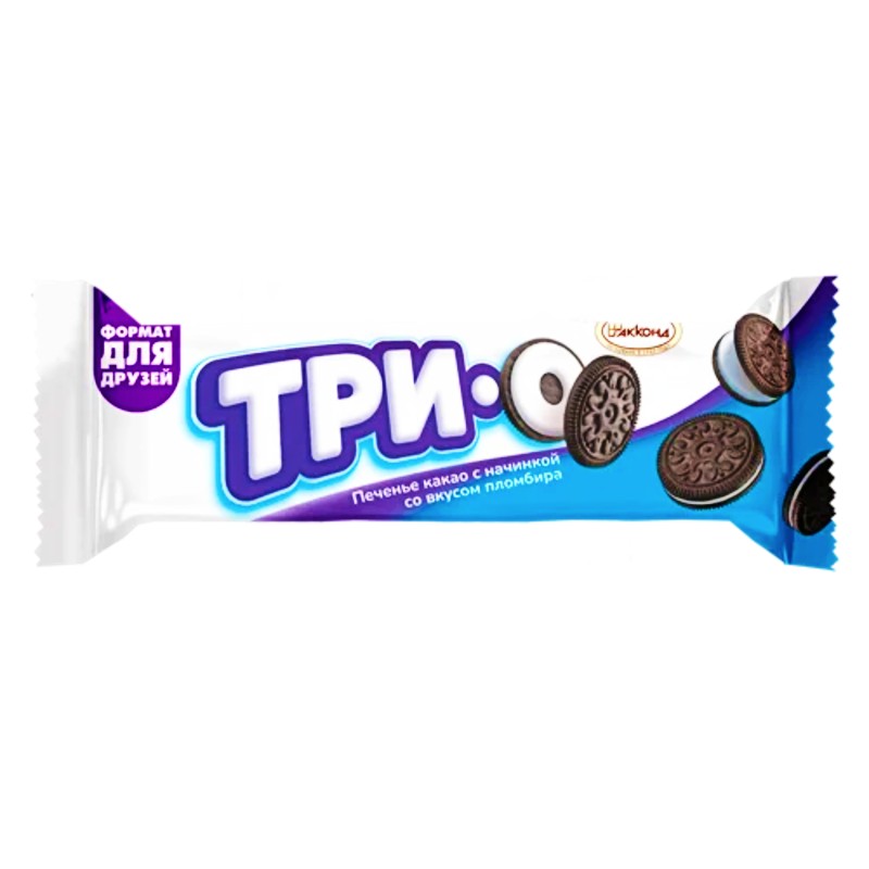Печенье оригинальное трёхслойное, сочетающее тёмное хрустящее печенье и кремовую начинку со вкусом классического пломбира, изготовленного из натурального молока.