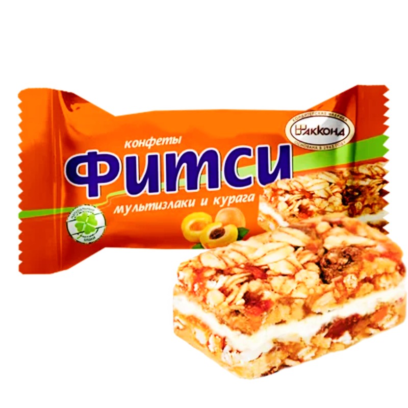 Батончик зерновой на основе злаков, воздушного риса и кусочков кураги в натуральном яблочном пюре.